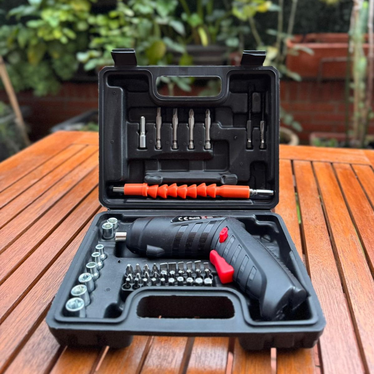 Kit Completo de 47 Piezas: Incluye una amplia gama de puntas de atornillado y brocas diseñadas para trabajar eficazmente en metal, plástico y madera, haciendo innecesario comprar accesorios adicionales.